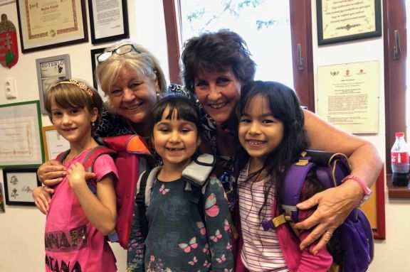 A Visfontis elnöke, Ottrubay Ágnes és önkéntes segítője, Christiane Schröck még az iskolaév kezdete előtt elutaztak Cserdibe és átadták az iskolakezdő csomagokat. A leendő elsősök tarka rajzokkal várták a látogatókat és azonnal felpróbálták az iskolatáskát.