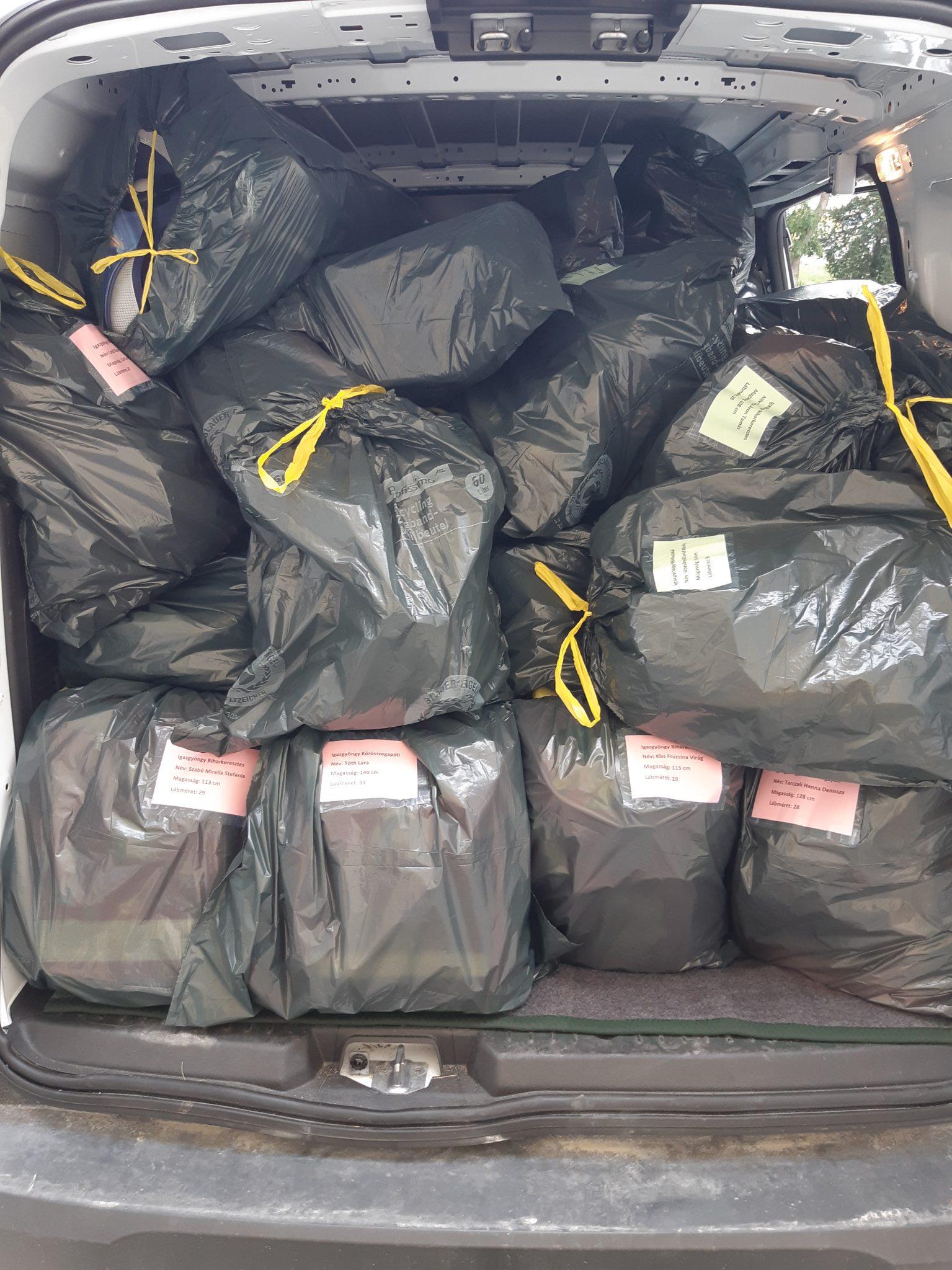 Több, mint 60 színes iskolatáskát, amelyek már úton vannak Budapestre az Igazgyöngy Alapítványhoz és még iskolakezdés elött tulajdonosaikhoz kerülnek. A leendö elsösök tolltartóval és tornaruhával felszerelt új iskolatáskát kapnak, míg az idösebb diákokra a Visfontis iskolagyüjtö akciója során összegyüjtött táskák és hátizsákok várnak.